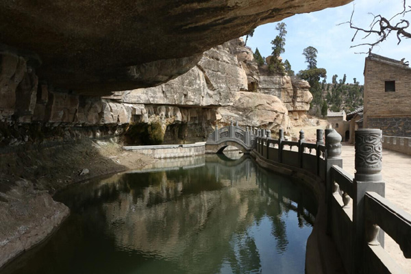 寺后百米石崖下存有莱公别墅。地势险要,构筑精巧,上面有悬崖、绝壁、飞瀑。山腰间还有人工凿成的石室,共40余间,多数为窑洞式建筑。